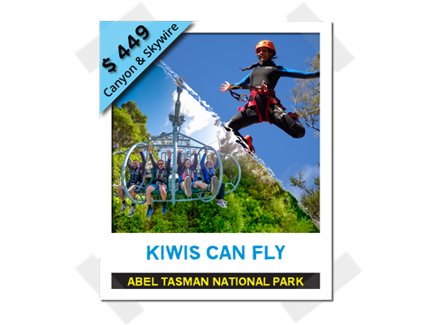 This combo would perfectly suit those traveling between the Abel Tasman National Park and Nelson/Picton. Or those spending a couple of days in Nelson. The combo is designed to be split over 2 days, the canyoning trip will take up a full day in the Abel Tasman National Park, followed by your Skywire Experience at Cable Bay Adventure Park on the other day